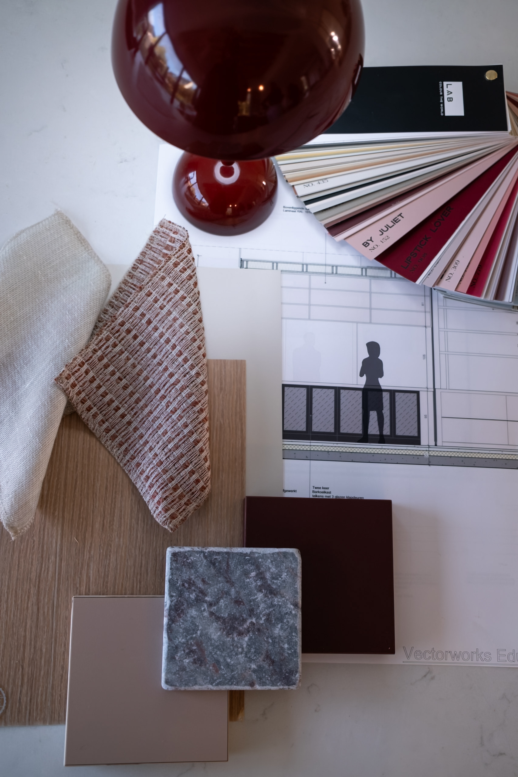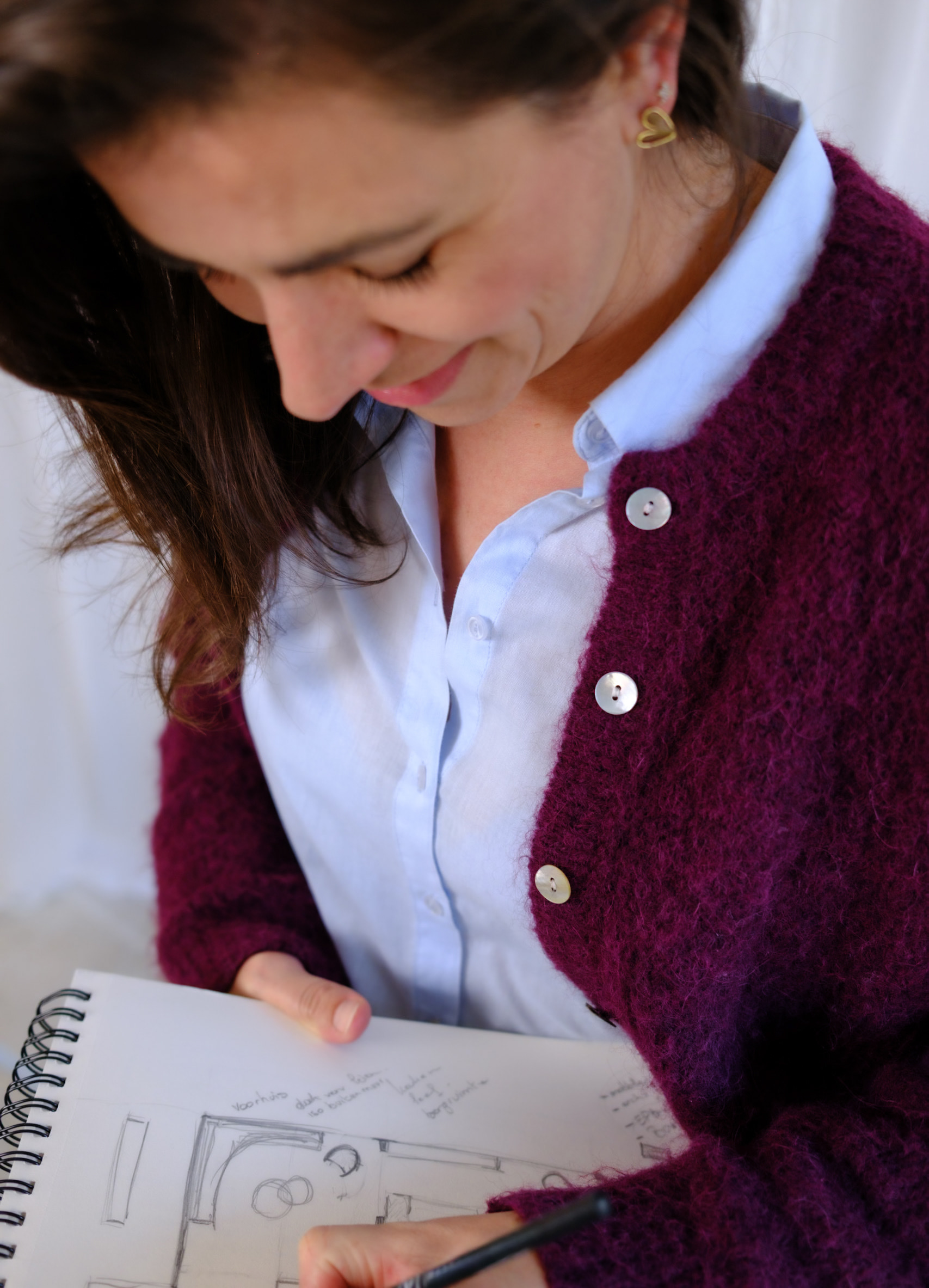 We vertrekken vanuit jouw wensenlijst en kijken hoe de ruimte die het best kan ondersteunen. Ik start met een indelingsplan, vaak aangevuld met een eerste schets die al richting geeft aan de latere sfeer en het moodboard.
